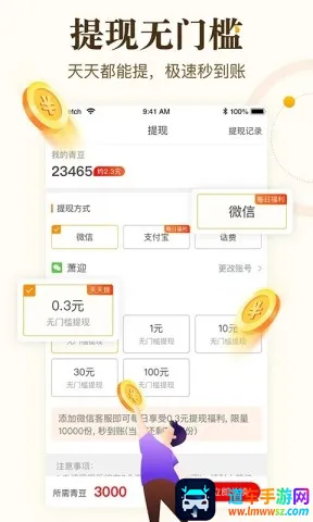 青年看点是一款灵活便捷的资讯平台。它以大数据技术为基础,能智能分析用户兴趣爱好,精准推荐符合口味的内容。涵盖娱乐八卦、社会新闻、健康生活、财经科技等多个领域的丰富资讯一应俱全。用户不仅能随时获取最新新闻和热点话题,还能在浏览过程中赚取现金。首次登录可获 20 元起新人现金奖励并立即提现,每日还有 10 亿红包雨狂派送。通过邀请好友并分享内容能额外获红包,边看视频边领钱,阅读赚提现秒到账。随着使用时间增长,推荐内容越精准贴心,让你快速了解世界动态与轻松获得经济收益两者兼得,每一次使用都充满乐趣。