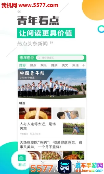 青年看点app是灵活便捷的资讯平台,能随时获新闻热点,凭大数据精准推荐。涵盖多领域资讯,浏览可赚现金,邀好友、分享内容也能得红包。还有精彩视频,功能丰富,更新日志显示持续优化。