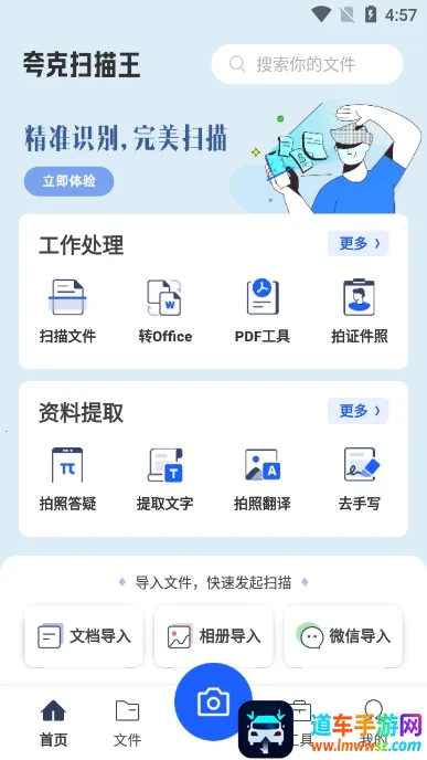 夸克扫描王是一款提升工作与学习效率的手机应用。能快速扫描识别文件转电子档,精准还原排版。有试卷擦除笔迹、拍照答疑等功能,还含多种格式转换及AI工具,如魔法擦除、老照片修复等。
