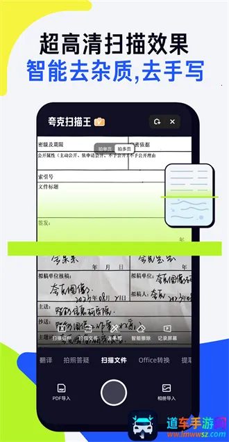 夸克扫描王是一款工作学习掌上好帮手。它能快速扫描和识别文件内容,把纸质文档转化为清晰电子版本,一扫即得的信息精准还原排版,整理资料更轻松。支持拍照答疑,学生可无限次拍照获题目解答助复习。试卷擦除手写笔迹功能每月提供20次免费使用,错题重练不再困难。还具备多种格式转换功能及AI工具,拓宽了应用实用性。其文字识别功能强大,简单一扫文字自动识别且准确无误,精准还原纸质文件排版。有了它,重要文件随时复习高效查找,不再为文件遗失烦恼,让工作学习更轻松,是一款非常实用的工具。