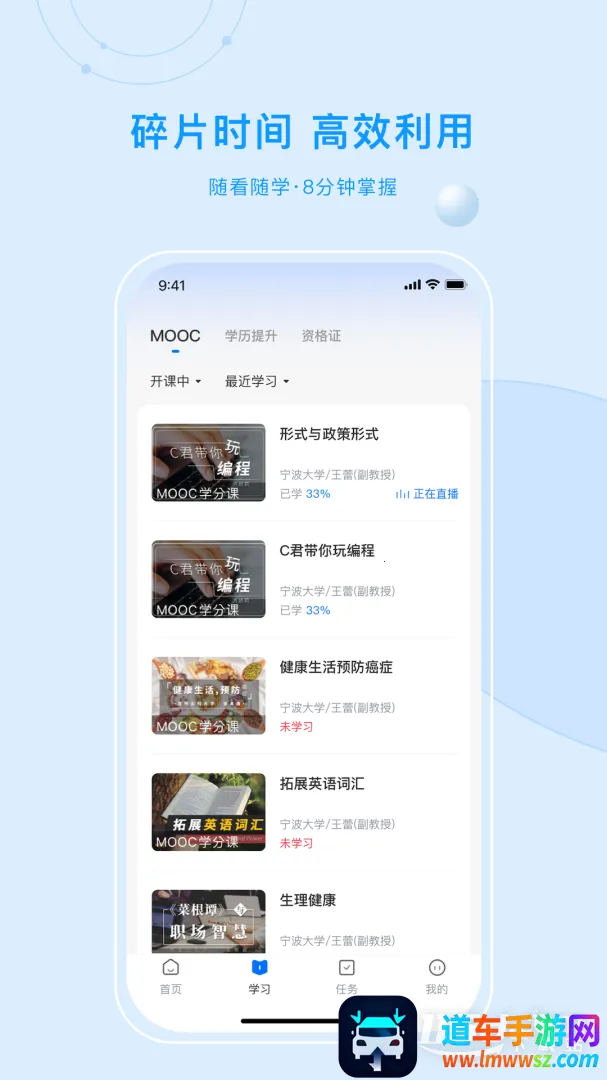 4、贴心移动体验:支持课件下载与离线观看,及时接收课程更新与提醒,自主安排学习节奏。