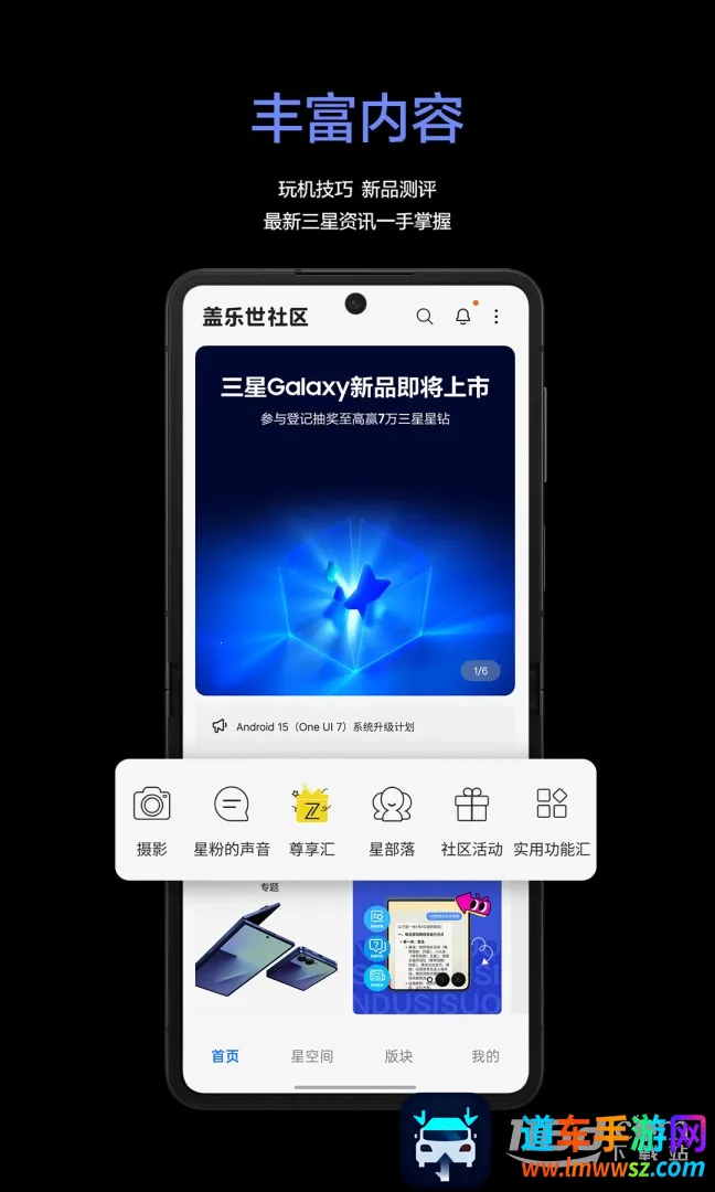 2. 盖乐世社区是三星产品官方粉丝交流平台,可了解更多玩机技巧,参加社区活动,如在新机评测、摄影等版块分享快乐。