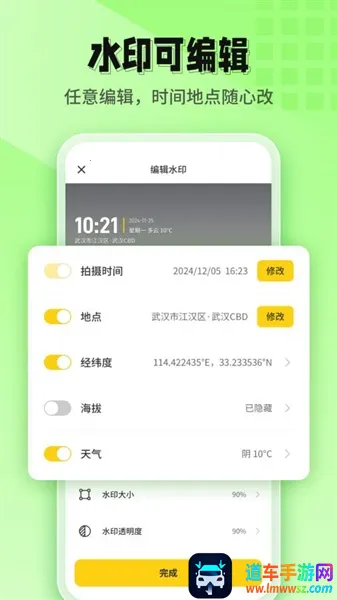 印记水印相机功能超强大!它能自动记录拍摄时的时间地点等信息,方便工作汇报,提高办公效率。海量水印模板,旅游打卡、生活记录、考勤打卡等多种场景都适用。软件会自动抓取并记录时间地点,还支持自定义水印。它能帮你轻松解决记录难题,比如工程管理中记录施工进度、材料进场时间,政务执法中巡逻执勤留痕等。在生活里,旅行打卡时能自动标记海拔天气,生成旅行日记。使用起来很方便,操作简单。要是想美颜,进入软件后,找到编辑功能,里面应该有相关美颜工具,比如调整亮度、对比度、磨皮、美白等,能让你拍出美美的照片,满足你记录美好生活的需求,快来试试吧!