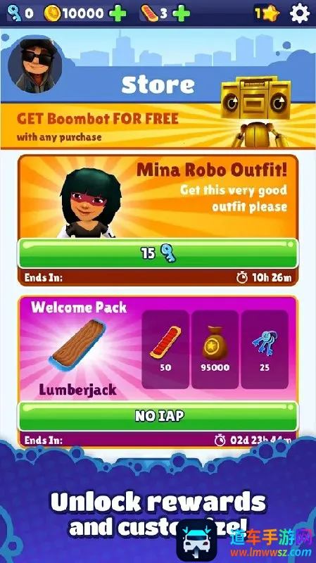 Train Riders是一款以火车为题材的趣味跑酷手游。游戏中,玩家要操控喜欢涂鸦的船员,躲避警察追捕,尽可能快地冲刺,躲避迎面火车。游戏设有排行榜,提升排名可获奖励解锁新角色。玩家通过简单滑动躲避障碍和火车,还能捡到磁铁、得分翻倍、超级跑鞋和喷射器等道具。此外,游戏有任务系统,完成任务得金币,可在商店购买角色、滑板皮肤等。游戏画面多彩高清,还有滑板冲浪、喷漆动力喷气背包等特色玩法。如果你喜欢跑酷游戏,不妨下载一试,感受在火车上尽情涂鸦奔跑的乐趣,体验躲避障碍、收集道具的刺激,与朋友挑战排名,享受突破自我的快感。