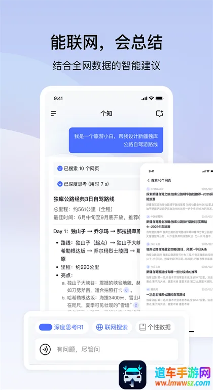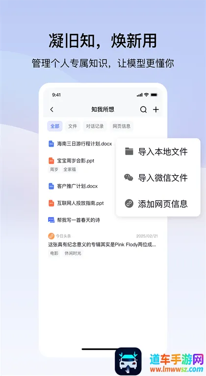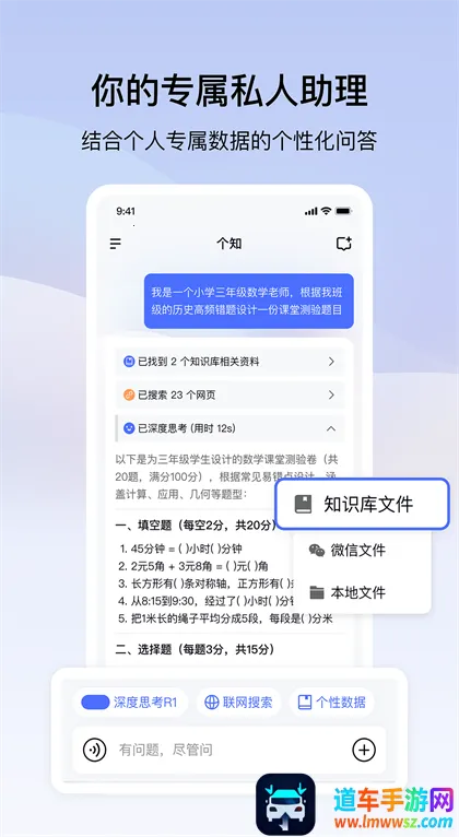 个知AI 2026官方正版是一款AI互动辅助软件。支持生成个人知识库、上传文件搭建学习网络,搭载DeepSeek大模型,能智能问答对话,有语音输入、深度思考及联网搜索功能,适合生活学习办公遇难题时使用。