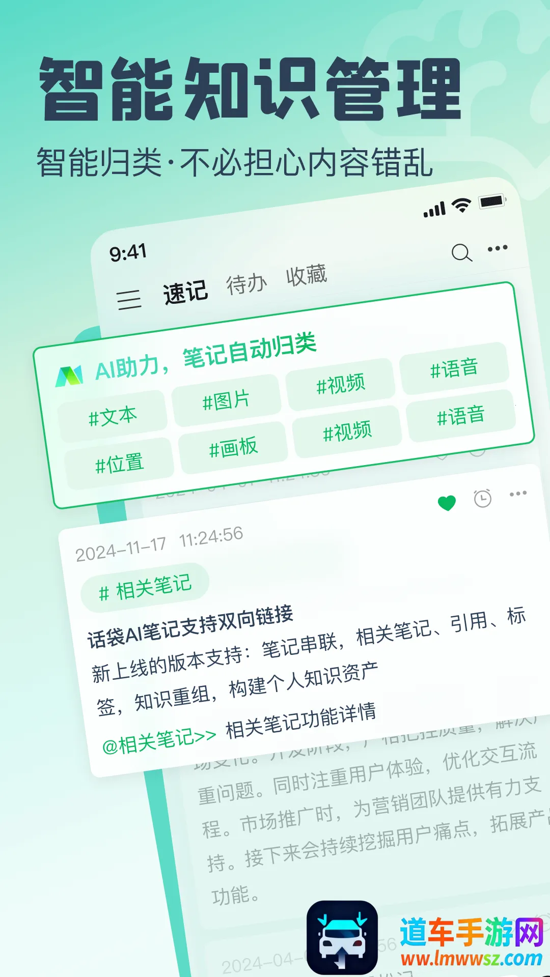 话袋2026官方最新版本是新一代AI卡片笔记产品,支持多端同步,具备随时记录、资源收藏、笔记串联等功能,1秒打开无广告,提供浮动速记,支持提取视频,还有多种特色功能与亮点助力知识管理。