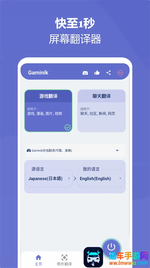 Gaminik是一款超棒的手机屏幕翻译平台。它支持多种语言,像英语、中文、法语等全球主要语种都涵盖。能进行双向或多语言翻译,不管是游戏、聊天、漫画、新闻还是APP界面等内容,都能精准翻译。它的译文自然,融入画面毫无违和感,就像游戏原生支持一样。翻译速度超快,结果显示快至1秒。而且特别准确,采用先进技术进行屏幕文字识别和翻译。操作也很简单,双击悬浮窗就能在任意界面全屏翻译,快速搞定聊天输入框文字翻译。还支持自动翻译、屏幕区域翻译等多种功能,包括翻译历史记录、文字复制、截图等。有了它,不管是日常学习、办公,还是外出旅游,语言交流都不再是难题,轻松满足你各种翻译需求,快来下载体验吧!