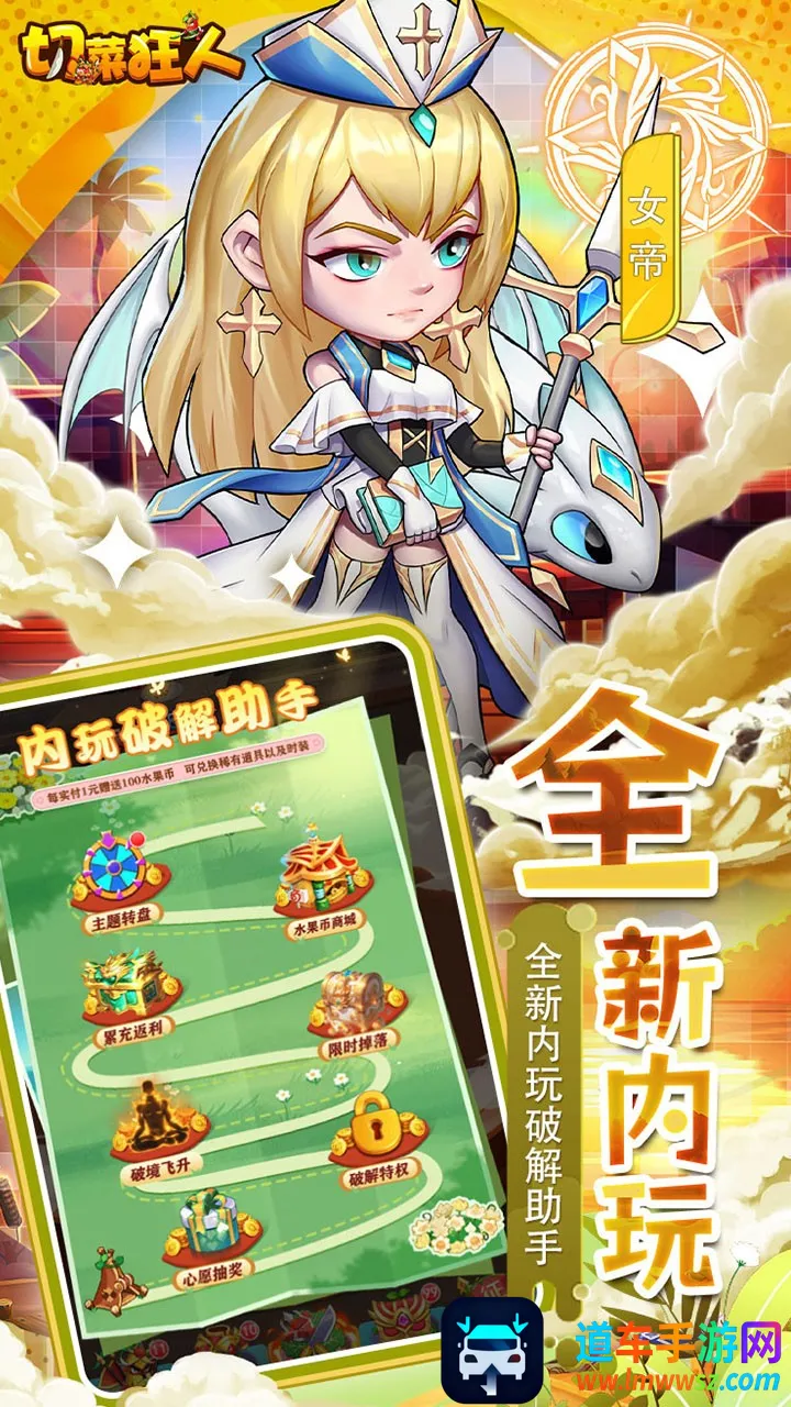 切菜狂人0.05折版是角色扮演卡牌手游,玩家化身厨神指挥蔬菜军团。零氪福利多,登录领现金券、红将等。有上百种拟人蔬菜可招募,美少女战宠助力,玩法轻松解压,策略性强,还能打造专属蔬菜王国。