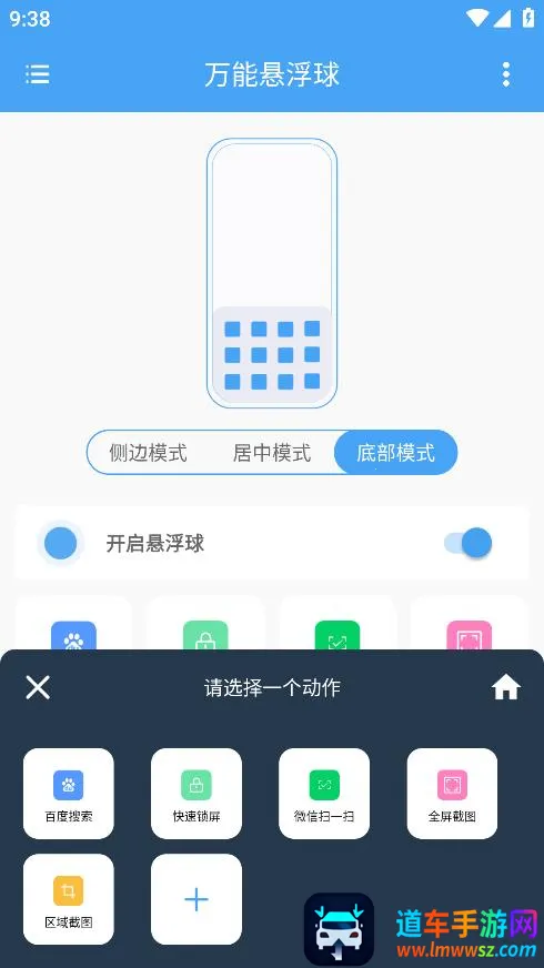 万能悬浮球优势显著。它具有高度灵活的定制特性,可自定义悬浮板及浮动按键功能,满足多样需求。拥有丰富主题设计,上百个漂亮主题让悬浮键不再单调,轻松找到适合自己的。能便捷完成截图、重启、关闭菜单等操作,在安卓手机使用中极为方便。运行稳定且占用资源少,适配多种安卓机型,无需Root权限就能正常使用所有功能。无论是单手操作还是日常多任务处理,都能为用户带来极大便利,是提升操作效率的优质手机辅助工具。