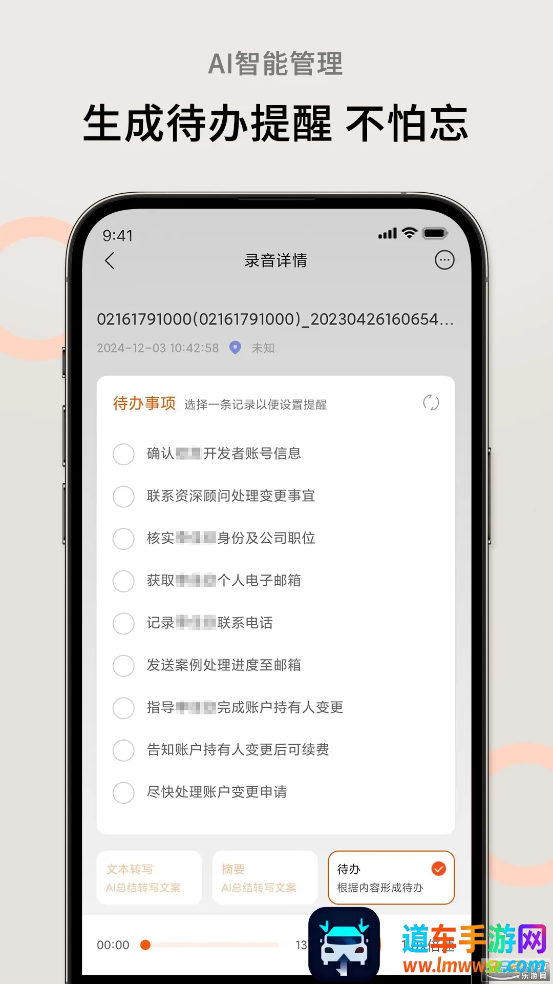 3. 智能提炼关键信息:可对会议录音进行摘要和待办信息提炼,助用户快速抓住重要内容与任务安排。