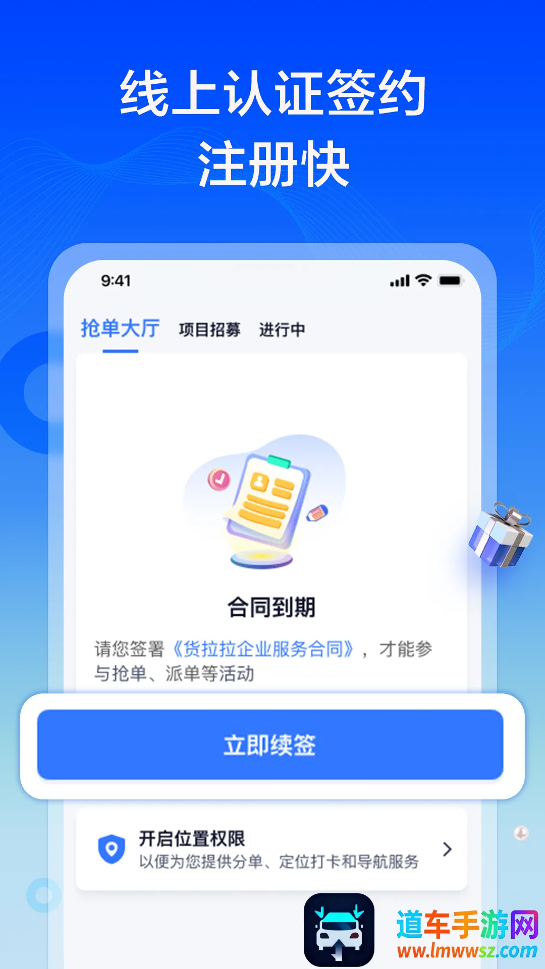 1、线上认证签约:下载货拉拉专送司机端 APP,填写真实信息,审核后线上培训,考试通过即可接单。