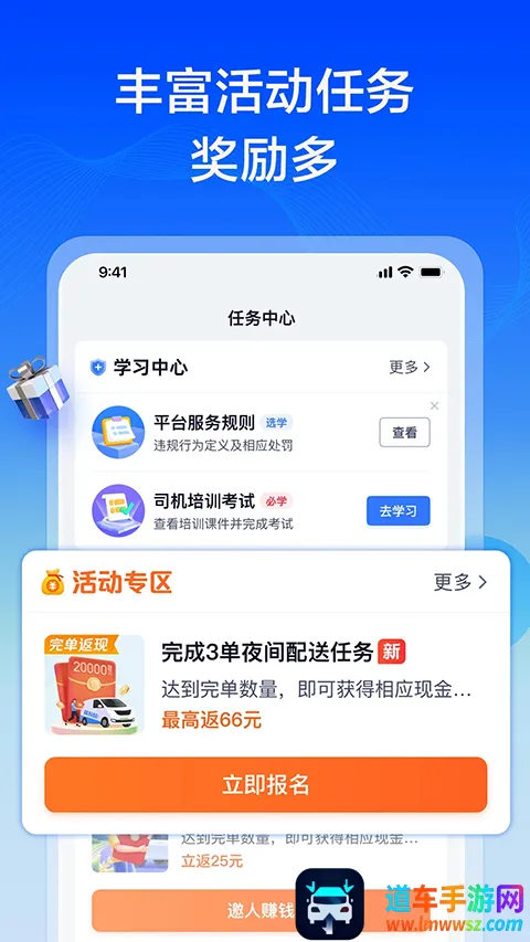 2、海量订单:各类订单均可接,灵活组合随心配,临时单、预约单、固定活等丰富多样。