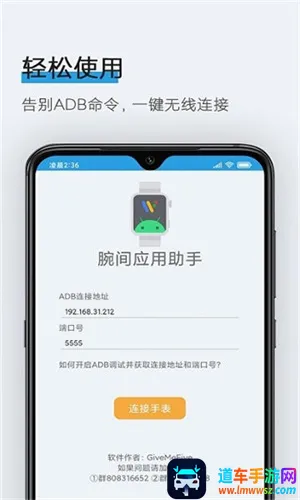 腕间应用助手是一款可视化adb调试工具软件,由GiveMeFive开发。它可无线连接手机与小米腕表,利用adb命令原理实现手表应用安装,告别复杂命令行,操作简单,资源丰富,还在不断更新完善。