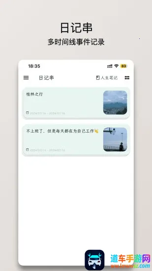 3. 独特日记串:有多时间线的日记串功能,可将不同笔记串联成完整故事。