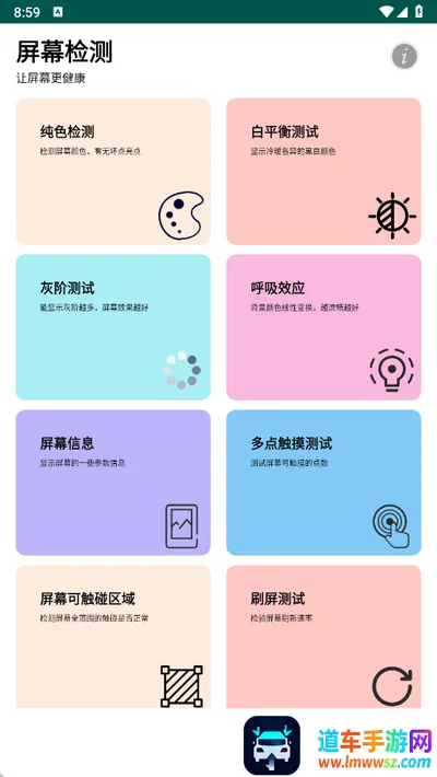 屏幕检测2026下载安装优势显著。它专为手机屏幕深度检测设计,能全面识别各类屏幕异常与显示问题,提供实时检测反馈,操作直观便捷,助你轻松掌握设备屏幕状态。支持多种屏幕参数与信息快速检测,随时随地高效筛查。其界面简洁清新,操作方便,无后台启动,既保护隐私又不消耗流量和内存,操作体验佳。还支持Android1.5以上版本,兼容性好,几乎适配所有手机款型,让你能放心检测屏幕健康状况。