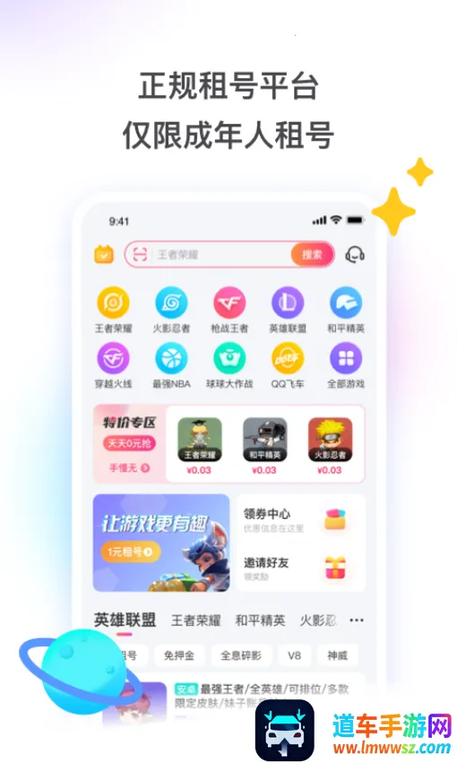 租号玩2025官方正版是专业游戏账号租售平台,涵盖LOL、王者荣耀等热门端游与手游。海量优质账号,有绝版皮肤、V8大神号。支持一键登录,安全防护强。还有优惠活动,客服全年无休。