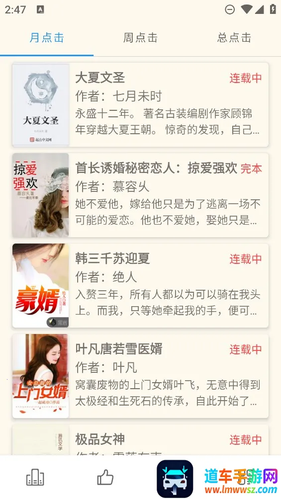 必去小说安卓版是一款非常不错的小说阅读平台。它拥有丰富的小说资源,无论是青春言情、恐怖悬疑还是同人小说等,一键搜索就能快速找到想看的,告别书荒。其界面简单清晰,能轻松找到想要的小说,还可设置阅读设置和管理书签。阅读体验良好,翻页流畅,能自由调整字体大小、背景颜色等。而且完全免费,无需付费就能随时随地享受阅读。支持离线模式,可一键快速下载小说到手机随时阅读。在这里,能轻松获取各种好书资源,有海量新书供选择,精准搜索想看的书,还有高品质图片、简洁界面、灵活便捷操作,以及多种自定义设置,能让喜欢阅读的朋友尽情享受阅读的乐趣,千万不要错过。