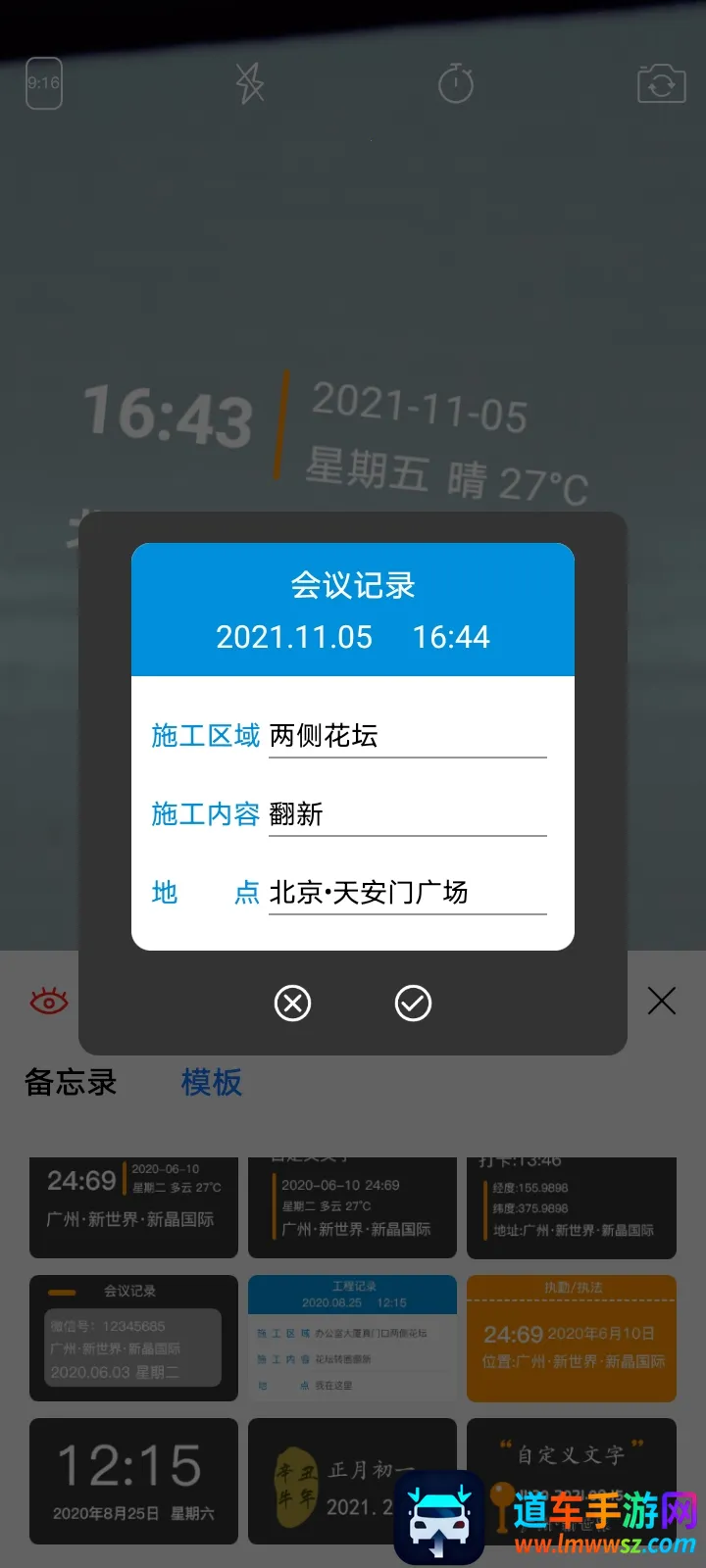 4. 海量模板选择:拥有海量水印模板,支持水印中时间地点更改,内容可自定义,满足多样需求。